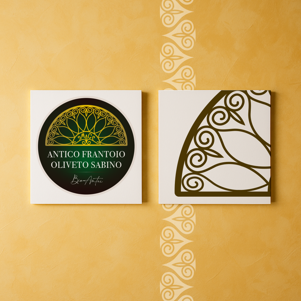 Abbiamo ascoltato quella storia e le abbiamo dato forma, ispirandoci all’antico frantoio, ai fregi in ferro battuto che adornano i portoni dello stabile appena restaurato. Da lì è nato il logo dell’Antico Frantoio di Oliveto Sabino, una sintesi visiva di eleganza e autenticità.